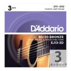 【アコースティックギター弦 3セット】 ダダリオ D'Addario EJ13-3D Custom Light 11-52 80/20 BRONZE 3セットパック お買い得 正規品