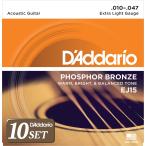D'Addario ダダリオ アコースティックギター弦 フォスファーブロンズ Extra Light .010-.047 EJ15 x 10セット 【