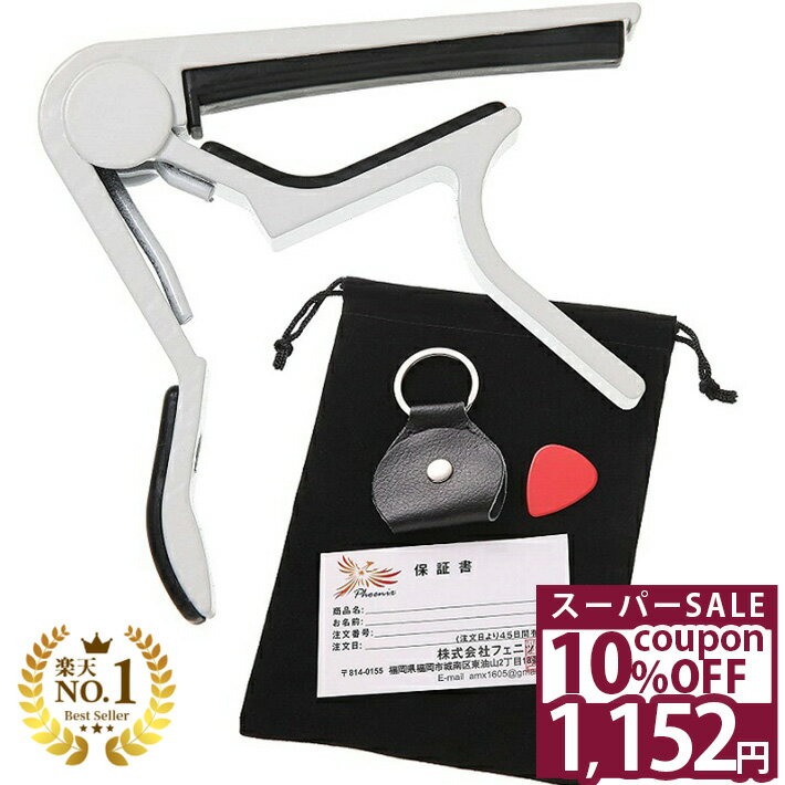 【スーパーSALE★30%OFF】 Phoenix カポタスト フェニックス ワンタッチ ギター カポ タスト 巾着袋 ピック ピックケース メーカー保証書 4点セット アコギ エレキ エレアコ ガットギター/シルバー タイプR新セット