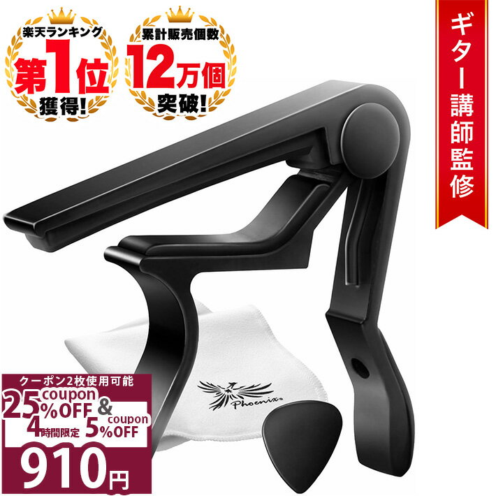 \Wクーポン10日22時〜/◆ 楽天1位◆ Phoenix カポタスト フェニックス ギター アコースティックギター アコースティックギター用 アコギ ウクレレ エレキギター クラシックギター ワンタッチ カポ アコギ エレキ エレアコ ガットギター /capo タイプR ブラック