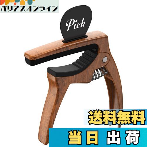【送料無料】TANMUS カポタスト 、三イン一亜鉛合金ギターカポタスト,アコースティックギター&エレクトリックギター用(ピッククリップ&ピック*4付き)弦楽器 、ウクレレ 、クラシックギター付属品 Capo (ダークウッド)