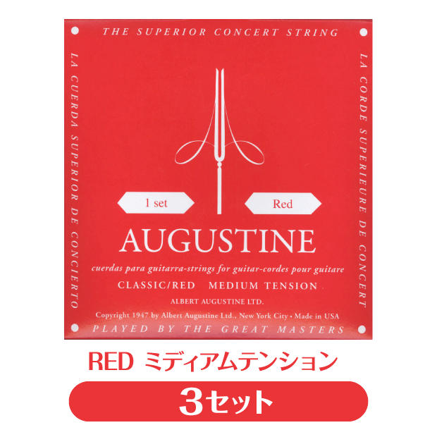 【3セット販売】オーガスチン Augustine クラシックギター弦 レッド ミディアムテンション 3セット【RED 赤】【np】