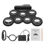 電子ドラム 子供 練習 初心者セット ドラムキット7パッド usb ドラムスティック ペダル付き White