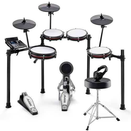 Alesis 電子ドラム セット 静音メッシュパッド 折りたたみ式 10インチスネア Bluetooth USB MIDI 440以上のサウンド ドラムスティック 練習 Drumeoレッスン キックペダル付き アレシス Nitro Max