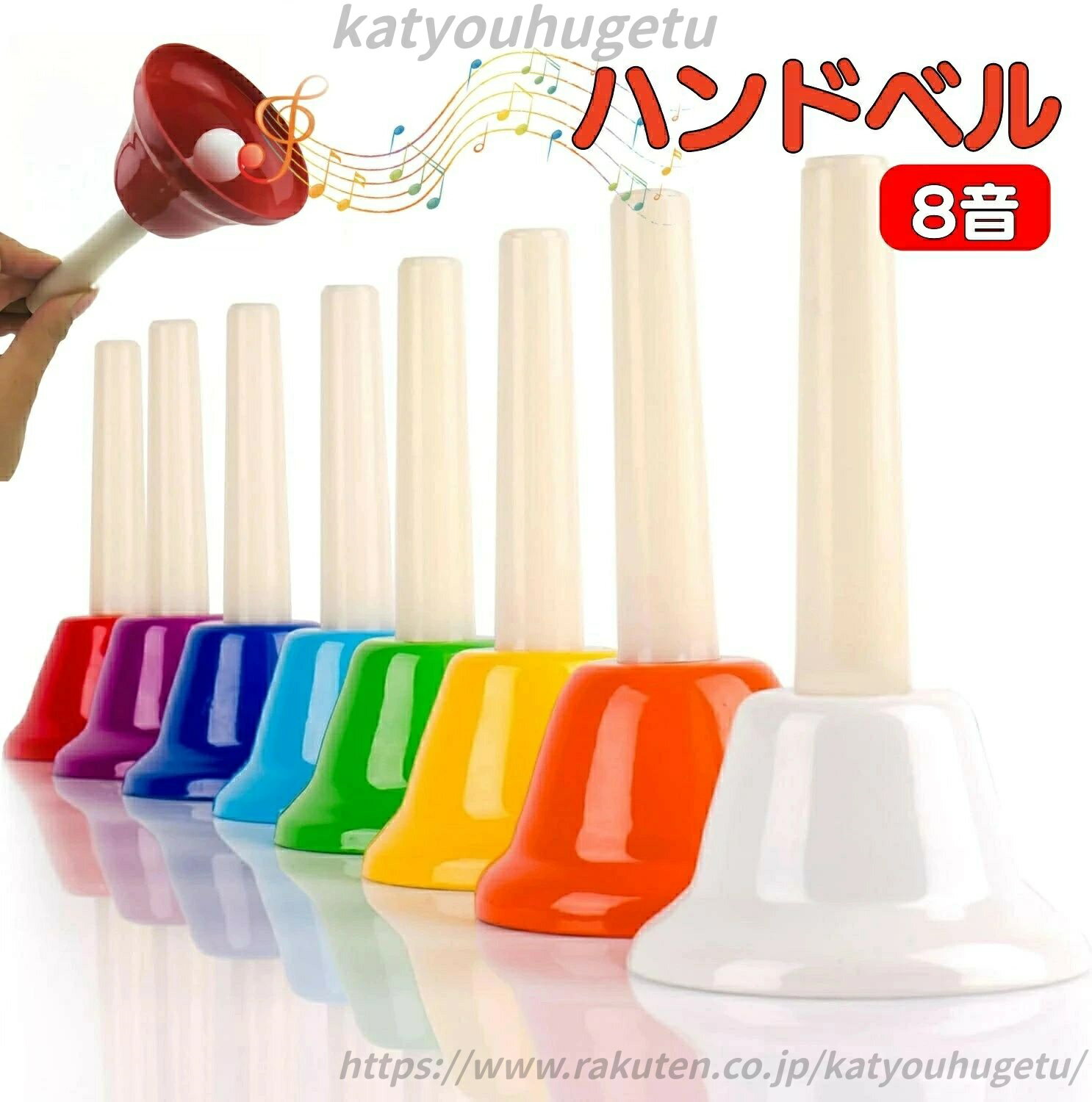 \ あす楽 /ハンドベル 8音 調律済 ミュージックベル キッズ 玩具 打楽器 子供 演奏会 知育 音楽玩具 カラフル 全音 演奏会 介護施設 保育園 幼稚園 小学校 熨斗 贈呈 卒園式 ギフト クリスマス プレゼント ラッピング