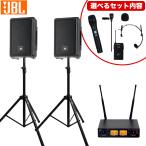 JBL パワードスピーカー 2本付き 簡易PAセット + 選べるワイヤレスマイクセット(ハンドマイク/ヘッドマイク/ピンマイク)