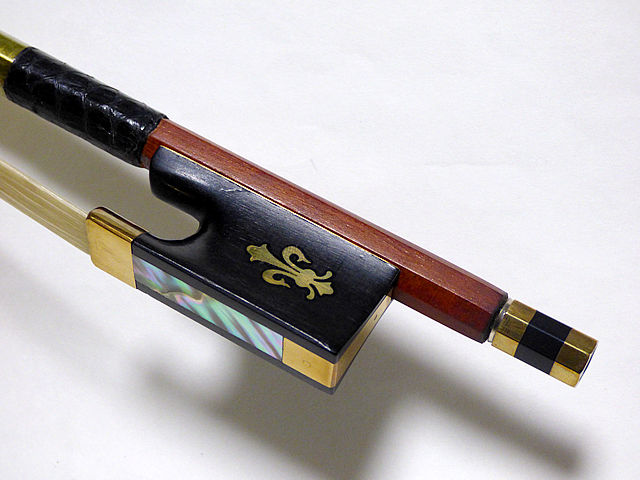 ヴィオラ弓 フェルナンブコ棹、黒檀フロッグ、シルバー巻き Fleur-de-lis装飾