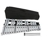 折り畳み 卓上 鉄琴 30音 初心者セット マレット2本 収納ケース付 鍵盤 (シルバー)