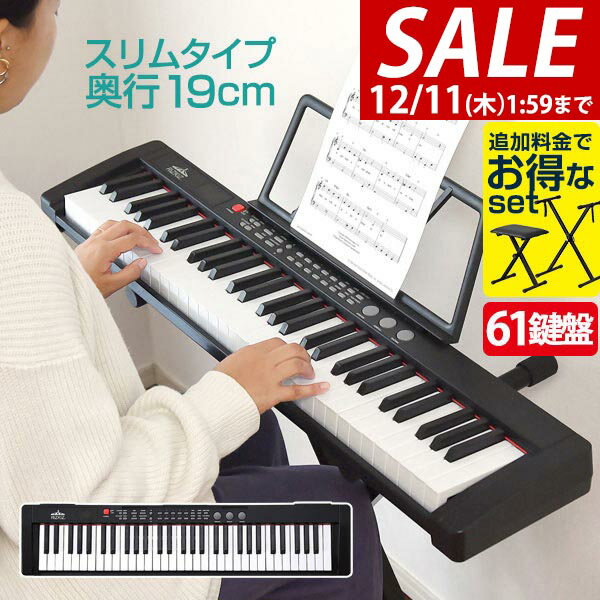 【7,260円→SALE6,600円〜12/11(木)01:59まで】【楽天1位】 RiZKiZ 電子キーボード 61鍵盤 スリムタイプ 選べるスタンド&チェア/カバーセットも 電子ピアノ シンセサイザー AC/乾電池駆動 持ち運び 楽器 練習 初心者 入門用 練習モード ★[送料無料]