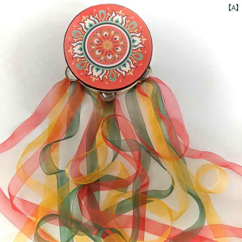 タンバリン 敦煌の 舞踊 楽器 飛翔 鼓 ウイグル タンバリン 漢服の 手持ち 写真 太鼓 リボン 唐