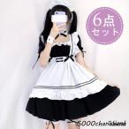 【ハロウィン】メイド 服 6点セット ワンピース エプロン 大きい リポン 仮装 レディース 可愛い カチューシャ付き コスプレ 半袖 パーティー イベント カフェ
