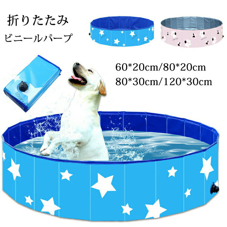 【25日限定10%OFFクーポン】プール ペット ビニールプール 子供プール 空気入れ不要 60cm/80cm/120cm 折り畳み ビニールパープ ペット用バスグッズ 子供用 プール 持ち運び便利 星柄 水遊び 猛暑対策 犬猫お風呂用 犬の爪 屋内屋外用収納便利 小型犬 中型犬 大型犬