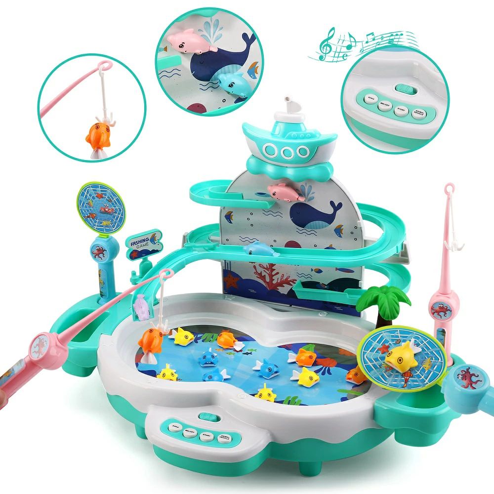 【楽天スーパーSALE 50%OFF】2in1魚釣りゲーム 磁気釣り 釣りおもちゃ 電動回転 フィッシング 水遊び 競争ゲーム 音楽 お風呂 流れる水 室内遊び 卓上ゲーム 子供用 知育おもちゃ 男の子 女の子 誕生日 クリスマス プレゼント 出産祝い