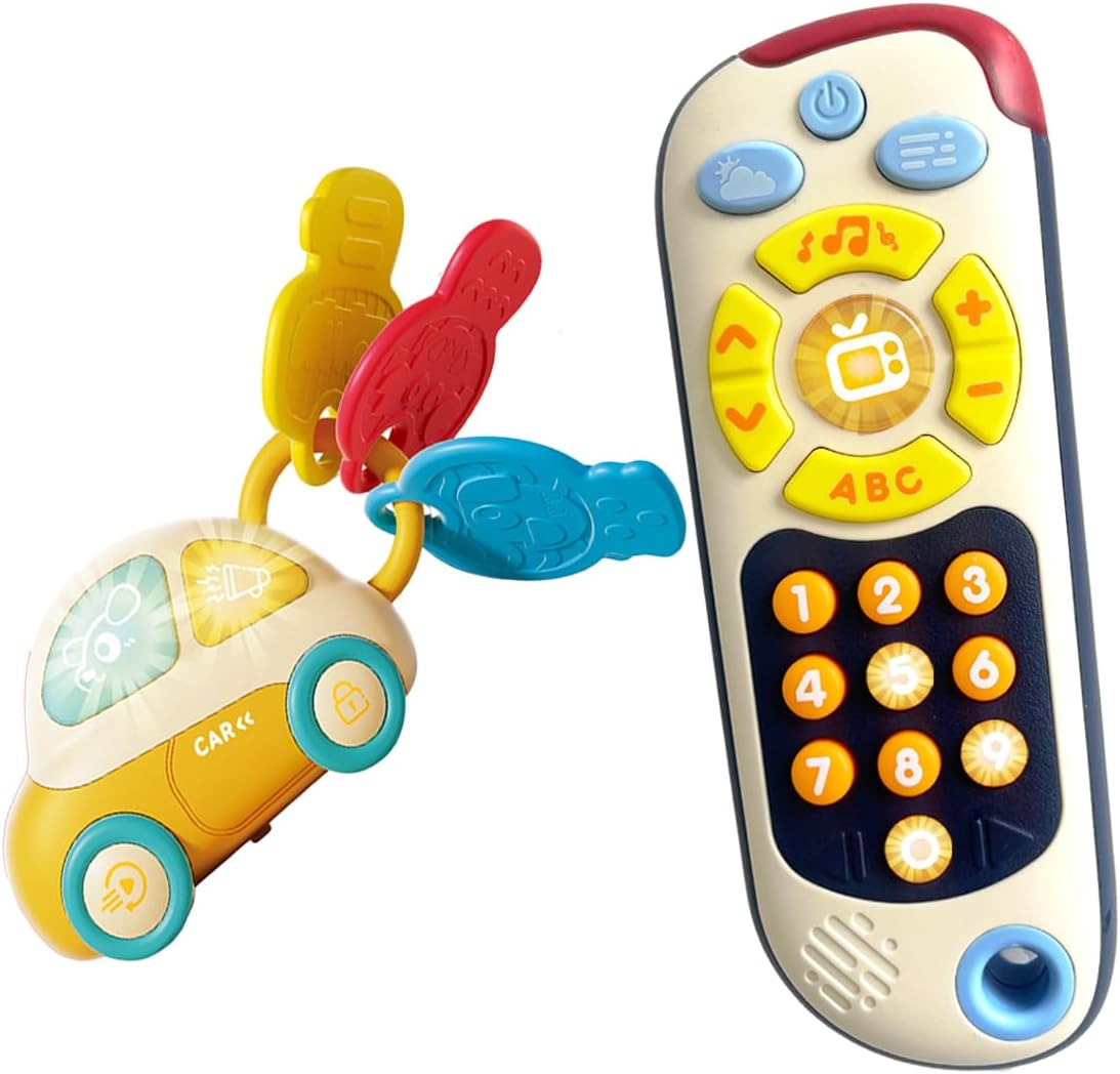 赤ちゃん おもちゃ 知育玩具 0歳1歳2歳 がらがら ラトル 【TVリモコン・車の歯がためおもちゃ2点セット 】音が出る/光る知育玩具 モンテッソーリ 指先の知育 早期開発 聴覚発達 男の子女の子 誕生日 出産祝い クリスマスプレゼント【2025新品登場】 音量調整可能