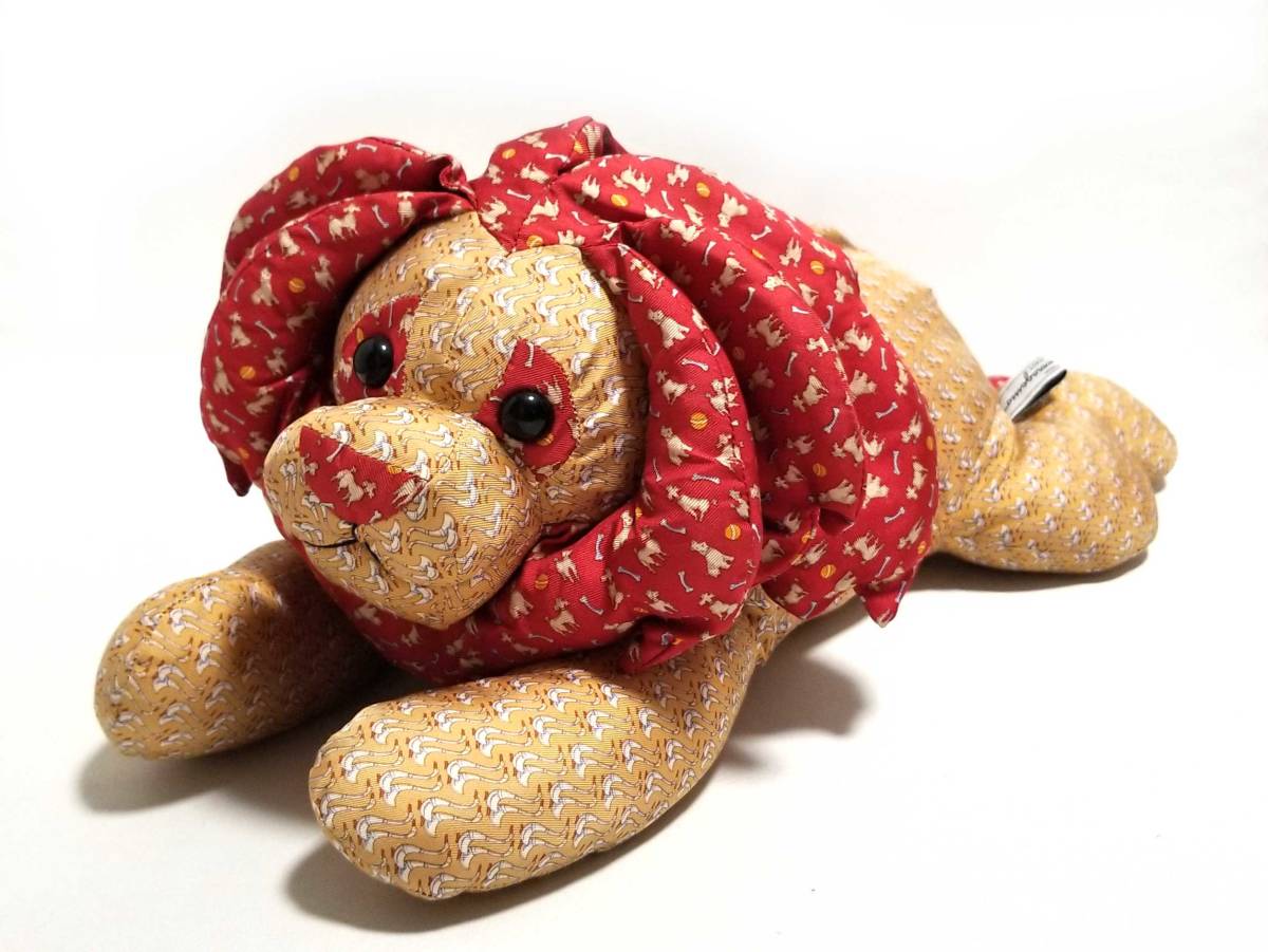 新品同様 フェラガモ ぬいぐるみ ライオン 人形 シルク100% アニマル Salvatore Ferragamo インテリア ベージュ 赤