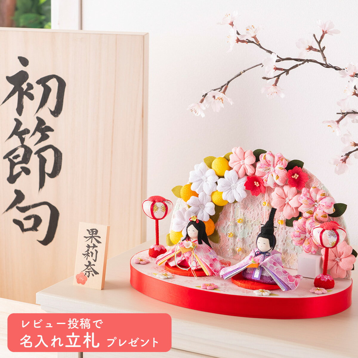 【早割!! 5%OFF★12/2 正午まで】雛人形 コンパクト モダン おしゃれ かわいい お雛様 ミニ サイズ ひな人形 桐箱セット 小さい ちりめん ぷりてぃ舞桜花舞台 お雛様 おひな様 京都老舗 龍虎堂 リュウコドウ 人気 インテリア おすすめ レビュー投稿 おまけ 名前 木札