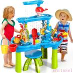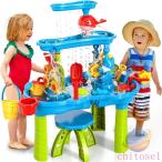 水のおもちゃ 2025年 ステップ2 ダブルスピンシャワーウォーターテーブルゾンチー椅子付き 脚の着脱機能あり幼児用3層サンドとウォータープレイテーブル砂遊び