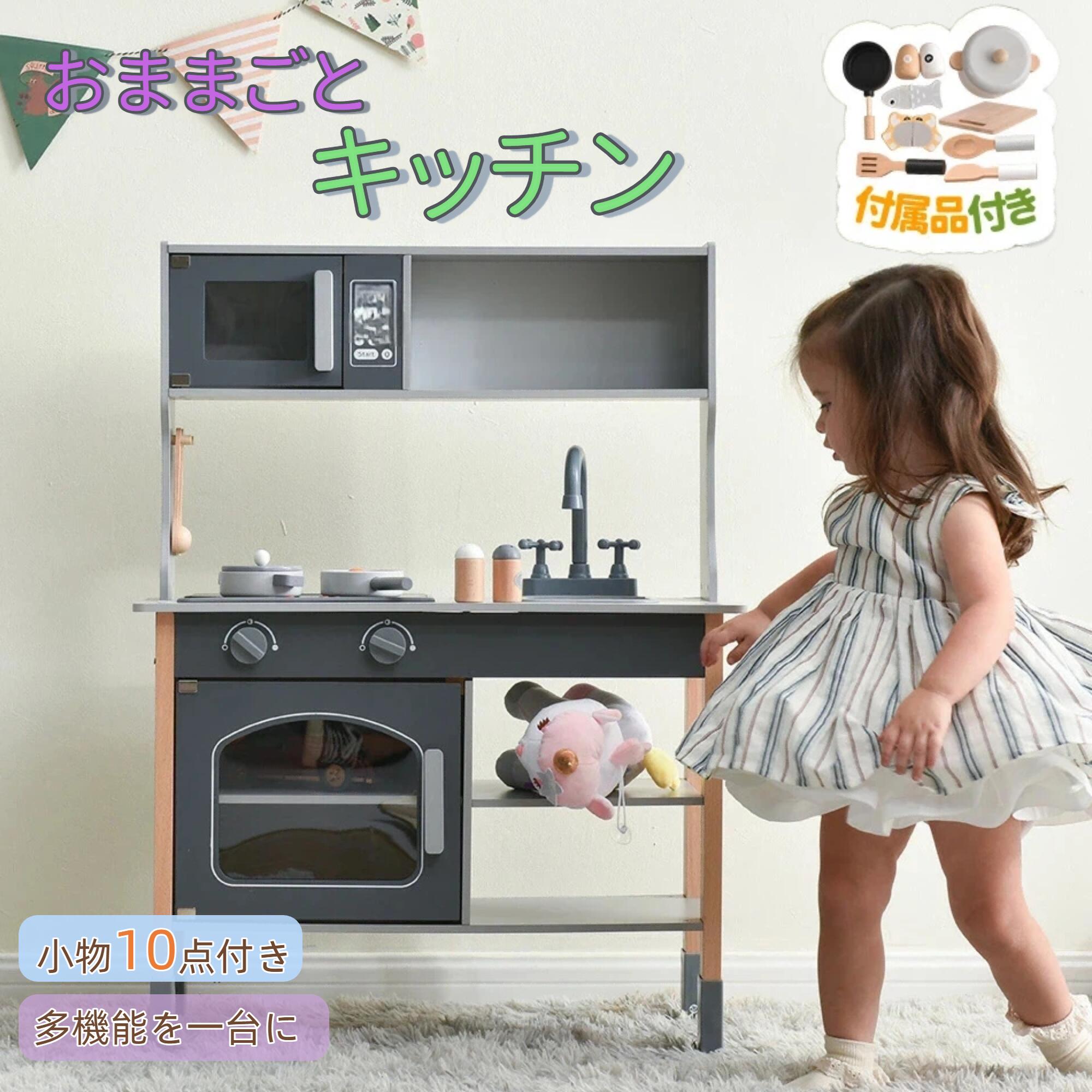 【24 時間限定 ★即得 15%OFF】おままごと キッチン 木製 調理器具付き ままごとセット 誕生日 台所 知育玩具 子供用 子供 収納 まねっこ コンロミニキッチン おもちゃキッチン キッズ ベビー プレゼント