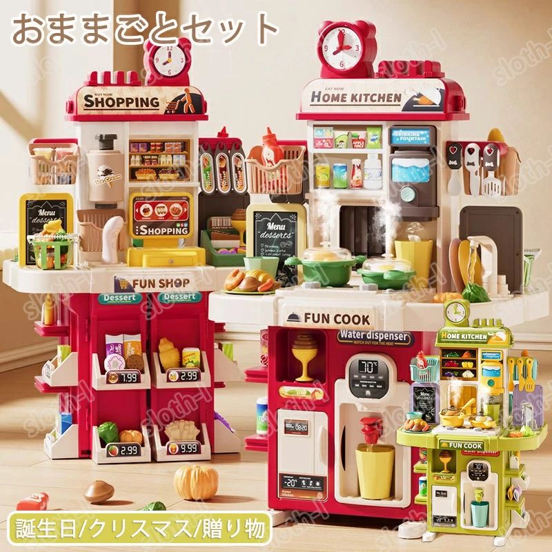 \スーパーSALE 10%OFF/おもちゃ おままごと キッチン おままごとセット お店屋さん 超豪華 スーパーマーケット キッチン 知育玩具 食材 野菜 蛇口 調理器具 コンロ 食器 なべ 鍋 フライパン ティーセット 食べ物 おままごとセット リアル 女の子 男の子 クリスマス ギフト