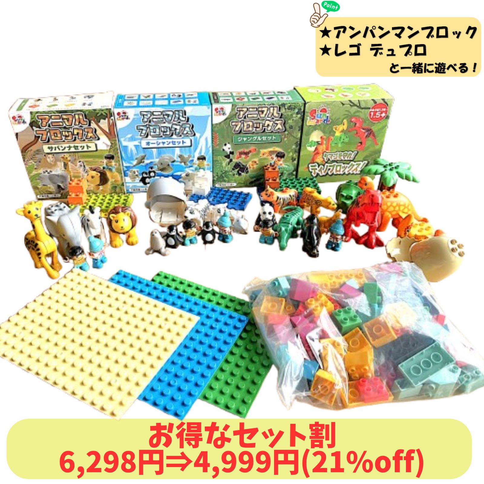 【お得なセット割21%off】 Sunwardsブロック アニマルブロックセット 動物ブロック ミニフィグ LEGO LEGOデュプロ レゴデュプロ アンパンマンブロック ブロックラボ 互換 動物おもちゃ 【レビューキャンペーン実施】