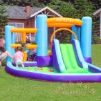大型プール すべり台付き トランポリン ジャングルジム KNK(株) 室内 屋外 子供用 大型遊具 1-5歳向け 耐荷重120kg 滑り台 岩登り 水遊び