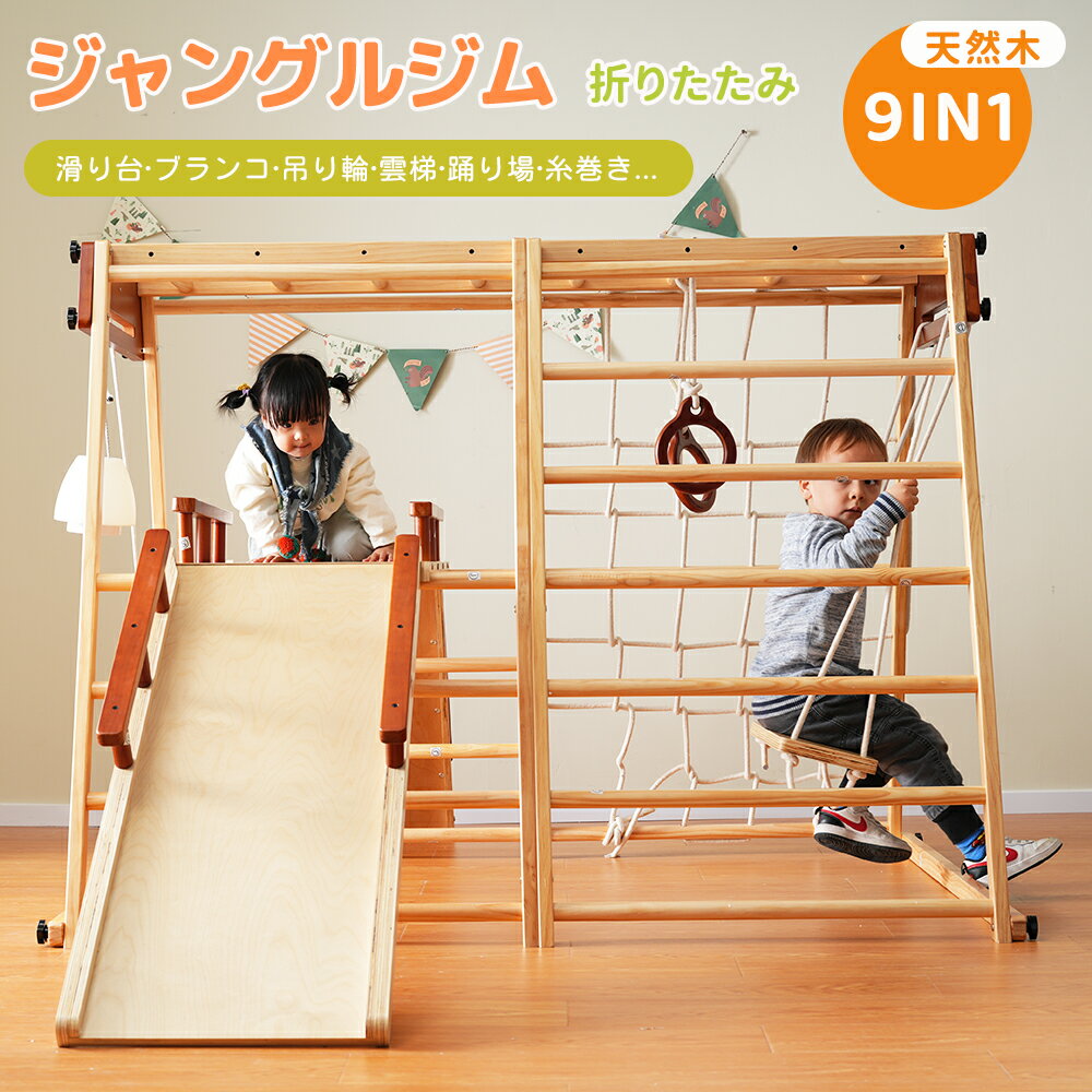 【1年保証/送料無料】【EN71認証済み/9IN1】ジャングルジム 折り畳み収納 天然木 滑り台 ブランコ 大型遊具 折りたたみ すべり台 室内 ベビー 子供 キッズパーク 誕生日プレゼント