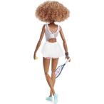 Barbie バービーロールモデルNaomi osaka Doll(11.5インチ、カーリーブルネットの髪)ポーズ可能、テニスドレス、靴とバイザーを着て、ラケット付き、子供向