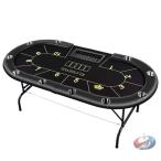 【ポイント5倍!特定商品!4月限定!】楕円形 ポーカーテーブル 折りたたみ 10人用 テキサスホールデムポーカーテーブル 楕円形 カップホルダー付き チップトレイ テキサス ホールデム 組み立て不要(213*106cm)