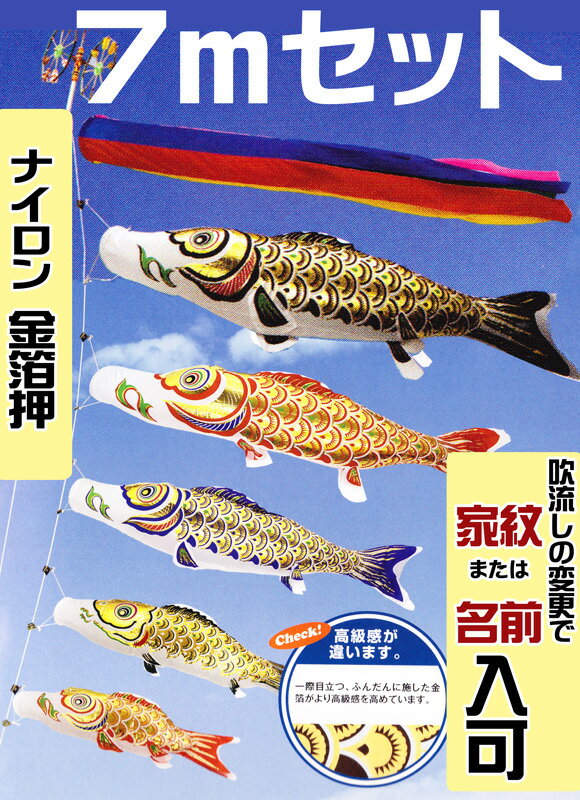 [PC]鯉のぼり 庭用 黄金 金箔押 7m セット アルミ金箔入り ポール別売