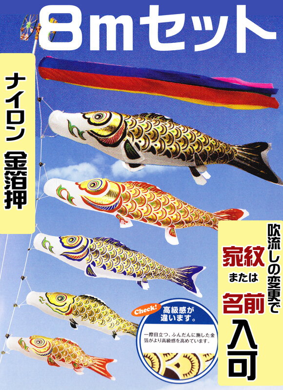 [PC]鯉のぼり 庭用 黄金 金箔押 8m セット アルミ金箔入り ポール別売