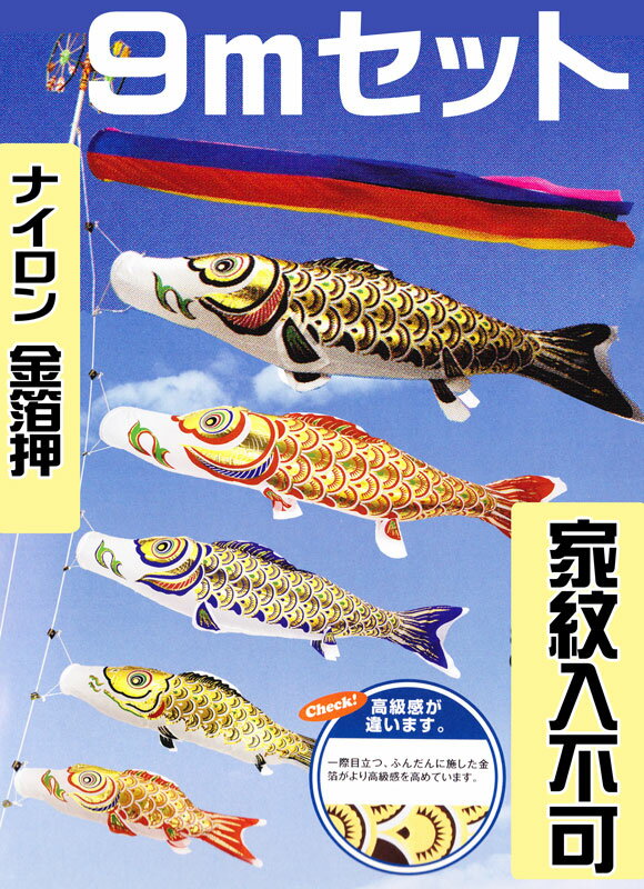 [PC]鯉のぼり 庭用 黄金 金箔押 9m セット アルミ金箔入り ポール別売