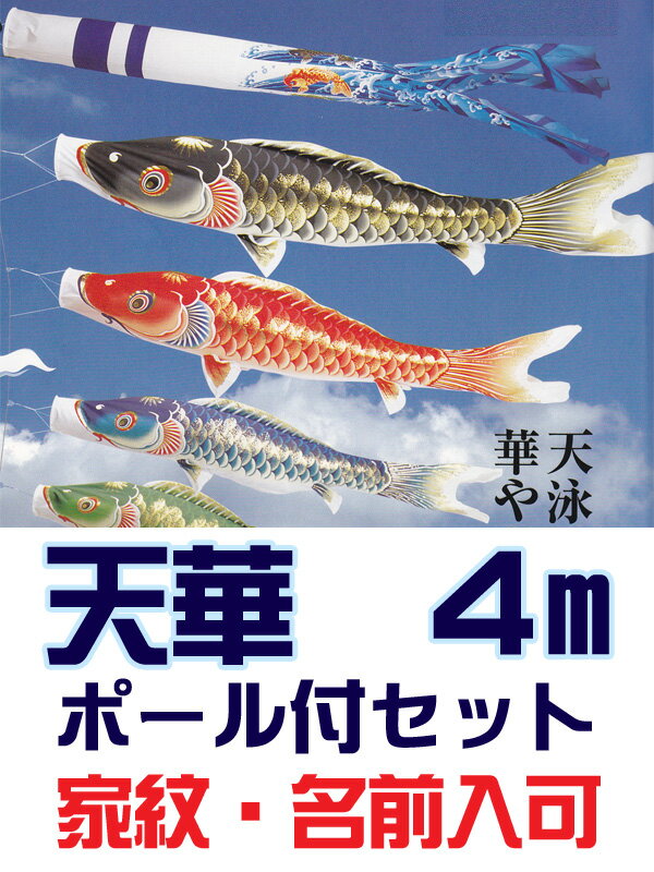 [PC] こいのぼり 庭用 [天華] 4m ガーデン用 ポール付セット 撥水加工
