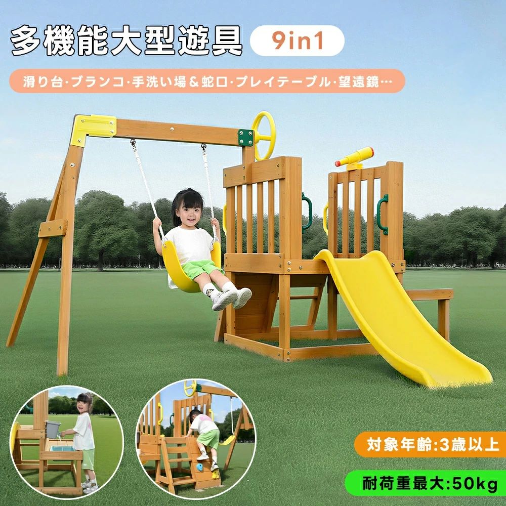 【9IN1/屋外対応】【手洗い場&蛇口付き】新作 木製 屋外遊具 ブランコ 滑り台 ジャングルジム 多機能 天然木 多人用 家庭用 大型 屋外 庭 組み立て アウトドア用 子供 遊び 大人キッズ 3歳 男の子 女の子 誕生日 プレゼント クリス
