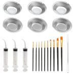 MOMI プラモデル 塗装セット 20点セット ステンレス 塗料皿 6枚+塗装筆 10本+調色スティック 1本+スポイト 3個 付き トーニングニード