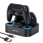 NEWDERY PS5 コントローラー 充電スタンド 急速充電 2台同時充電可能 置くだけ充電可能 過充電防止 USB-Cケーブル付属 LED指示ランプ付き ブラック