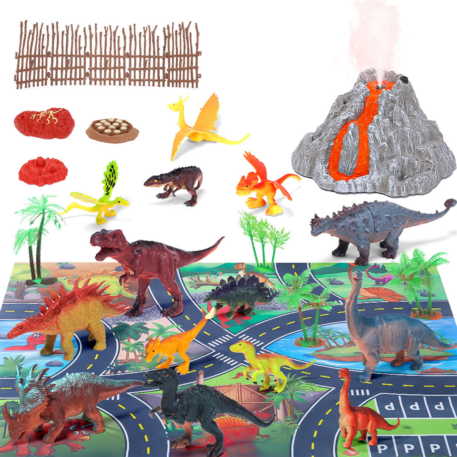 【スーパーセール 50%OFF】【31点セット 恐竜ワールド】噴霧する火山 & リアルなライト/効果音 大型マップ&収納ボックス付き 知育玩具 男の子への贈り物に 光と音で遊ぶ 恐竜フィギュアセット 31点 大型プレイマット付き 収納ボックス仕様 3歳以