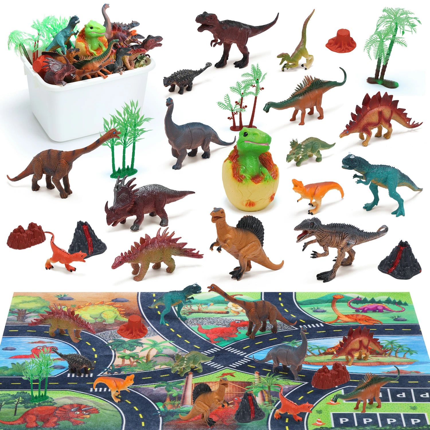 【スーパーセール 50%OFF】恐竜フィギュア リアル模型 28点セット 大型プレイマット 19種類 恐竜 ヘリコプター 化石 収納ボックス付き 恐竜 樹木 火山 子供向け 誕