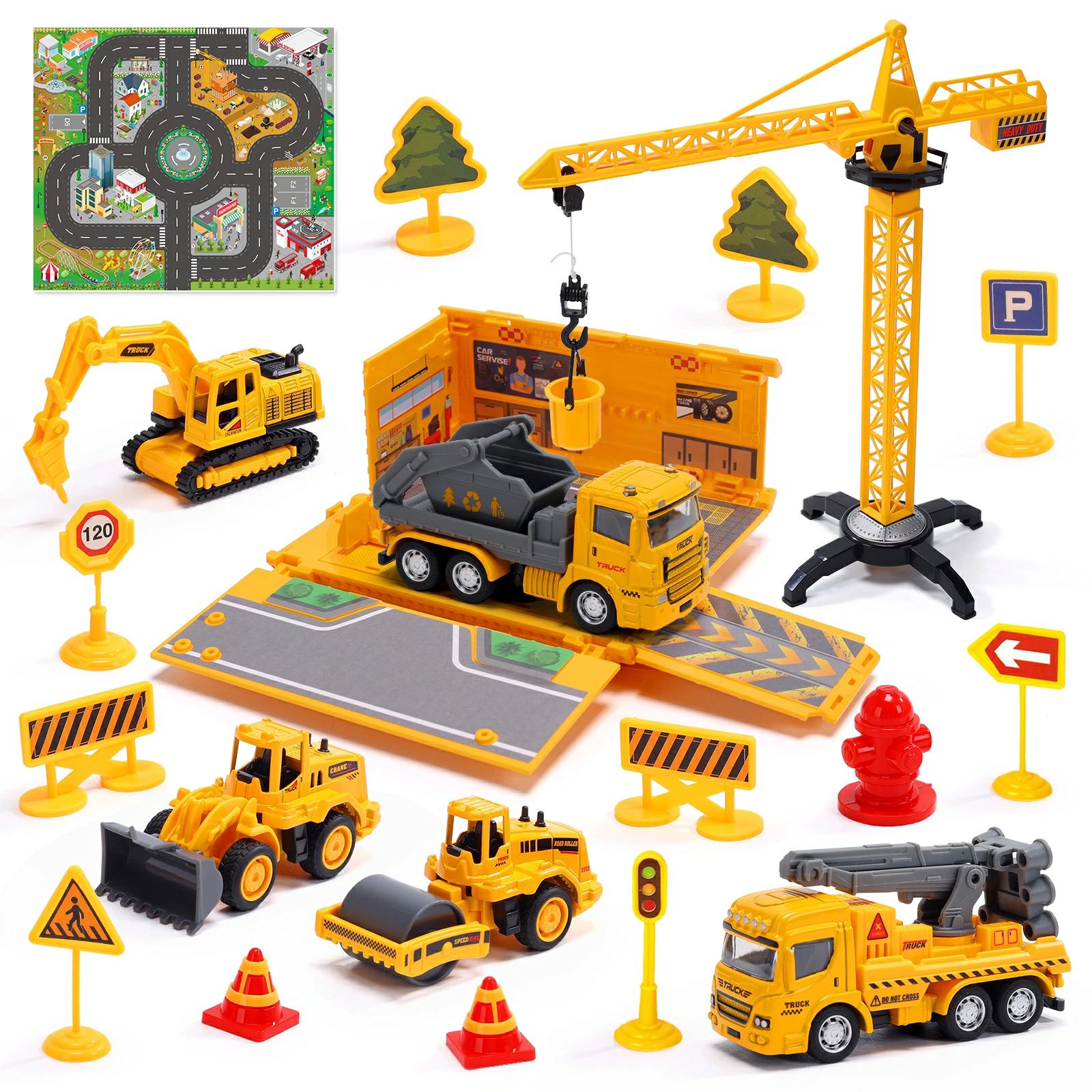 【限定18%OFFクーポン】建設車両 ABS製 おもちゃ 車おもちゃ トラクター 作業車両 大型プレイマット 慣性車 高品質素材 ミニカー ショベルカー 工事現場 室内遊び ゲーム 知育玩具 プレゼント 玩具安全基準合格 5点or8点セット