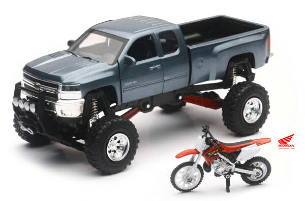 Chevroletシボレー シルバラード ホンダ バイク付 四駆 ピックアップトラック 模型 / NEW-RAY 1/32 ミニカー 模型