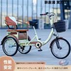 大人用三輪車 20インチ 三輪自転車 高齢者向け 晟恒中馳 高さ調節可能 ダブルバスケット ダブルブレーキ 収納便利で毎日使いやすい一台