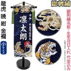 五月人形 名前旗 座敷旗 タペストリー 龍虎 暁 紺 (小) 金襴 スタンド付 銀刺繍 生年月日 名前入れ代金込み 5ad-ryuaka-n-s-s