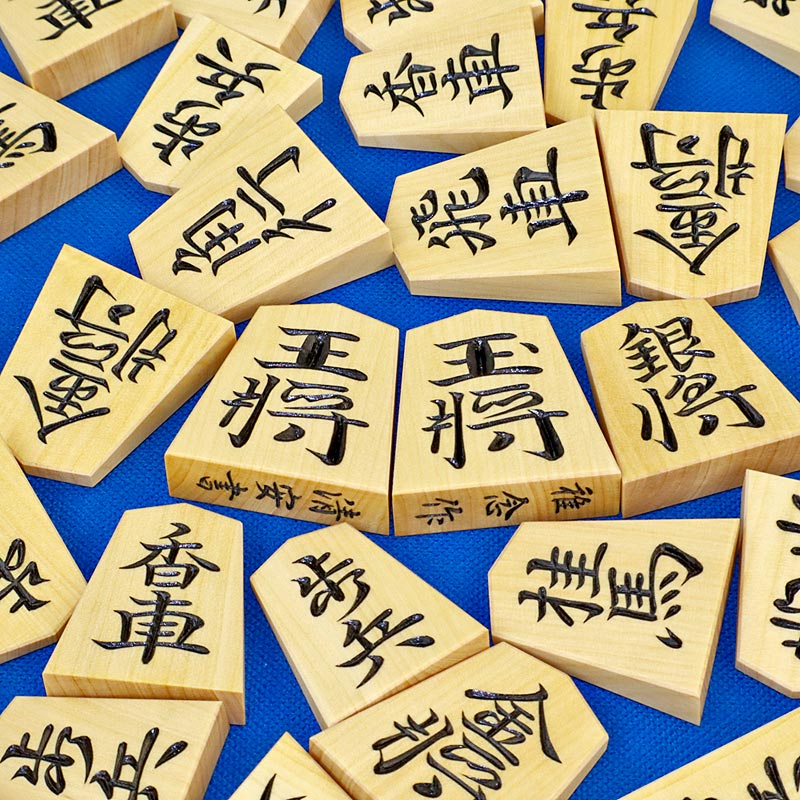 将棋駒 稚念作 御蔵島産本黄楊特上彫駒 清安書 面取り加工 ※桐平箱付き