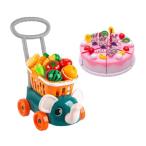 子供用ショッピングカート スーパーマーケット 手押し車おもちゃ 男の子、女の子、子供の誕生日に使えるインタラクティブなカット遊びフードセット