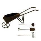 【並行輸入品】ミニチュアガーデニングツール ドールハウス ミニチュアガーデニングアクセサリー 手押し車ミニさびたシャベル鍬とピッチフォーク付き