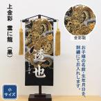 五月人形 名前旗 刺繍 上金彩 雲に龍 黒色 銀文字刺繍 小サイズ 木製スタンド