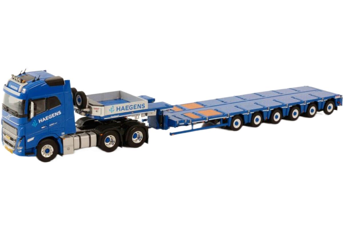Haegens Kraanverhuur Volvoボルボ FH5 Globetrotter 6x4 MCO-PX semi lowloader低床トレーラー 6axle トラック 模型 /WSI 1/50