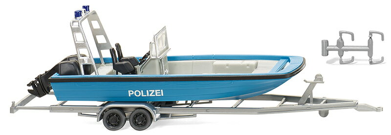 多目的ボート MZB 72 ポリス仕様 トレーラー付 警察 働く車 模型 モデル / Wiking 1/87 ミニカー 模型