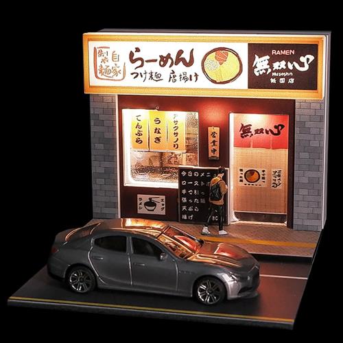 ラーメン屋 1:64 USB点灯可能 店舗 街路 装飾車道 情景コレクション ジオラマ 建築模型 教育 DIY 装飾 趣味養成
