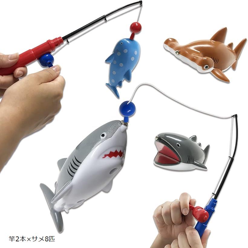 サメ釣り勝負。 魚釣り ゲーム おもちゃ フィッシング マグネット お風呂 プール 水遊び 子供用 竿2本xサメ8匹 (竿2本xサメ8匹)