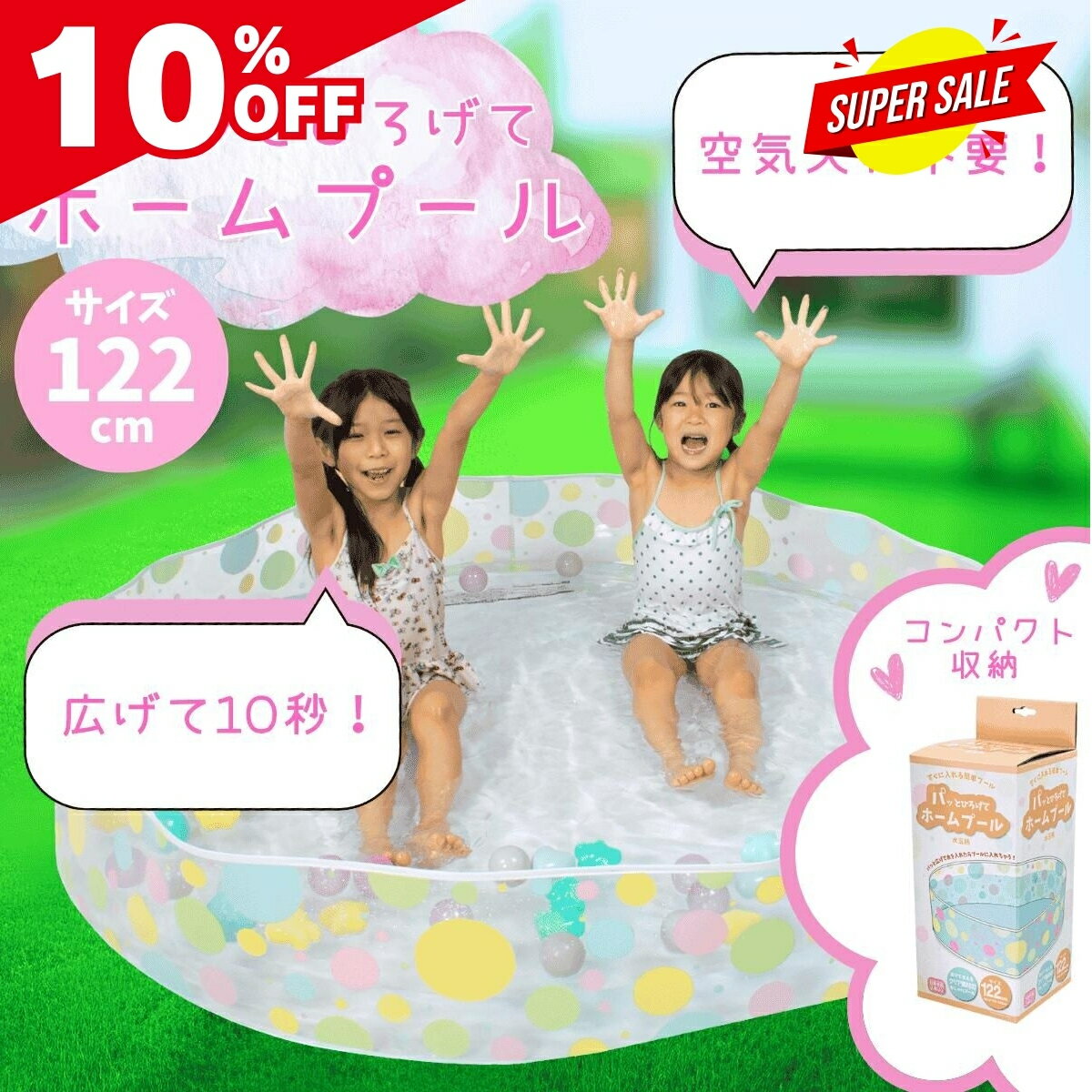 \スーパーSALE10%OFF/2480円→2232円 ビニール プール 空気入れ不要 122×25cm 子供用プール 水玉 ドット柄 かわいい 大型 透明 簡単 丸型 円形 大きい 122センチ 浅い ビニールプール 折りたたみ 家庭 子供用 子ども 赤ちゃん ベビー ベランダ 犬 ペット用 水遊び